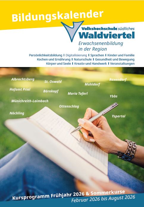 Die Volkshochschule Südliches Waldviertel ist ein regionaler Anbieter für Erwachsenenbildung und Freizeitbildung. Neben dem zweimal jährlich erscheinenden Bildungskalender findet man hier die Kursdatenbanken für das Südliche Waldviertel und die VHS Ybbs a.d. Donau.